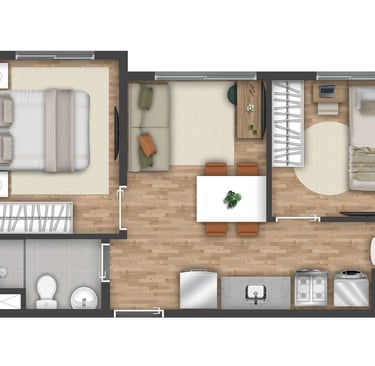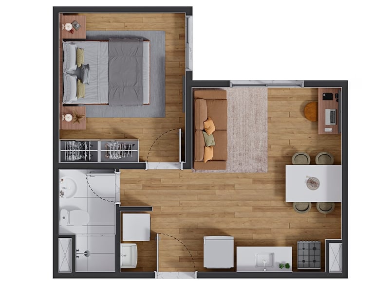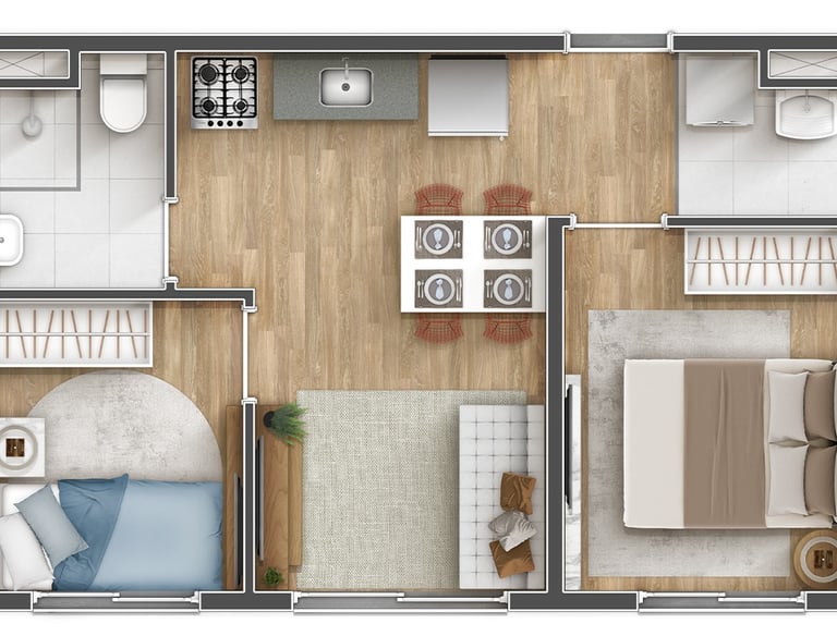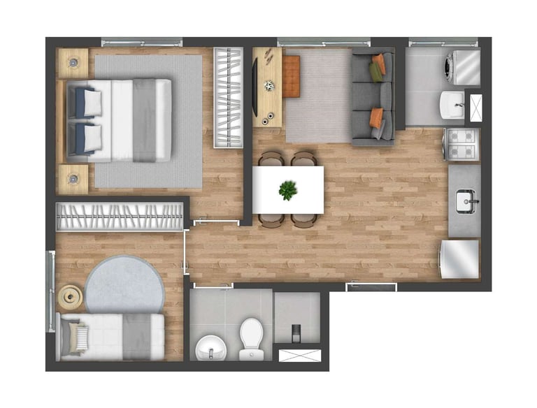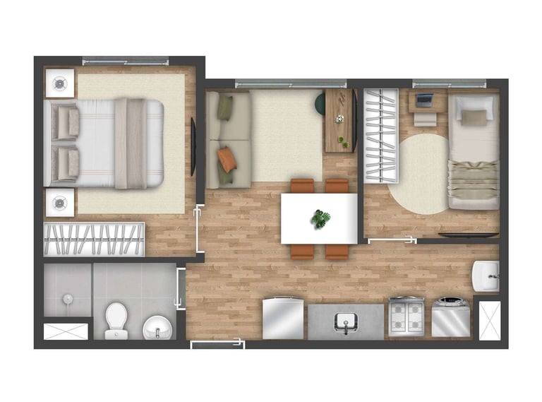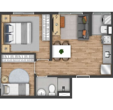 Grátis: Piso de madeira ou equivalente* nos quartos para mais conforto e sofisticação